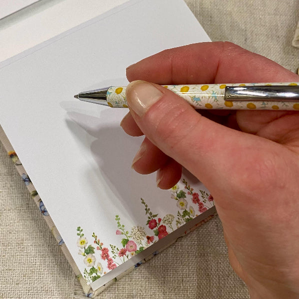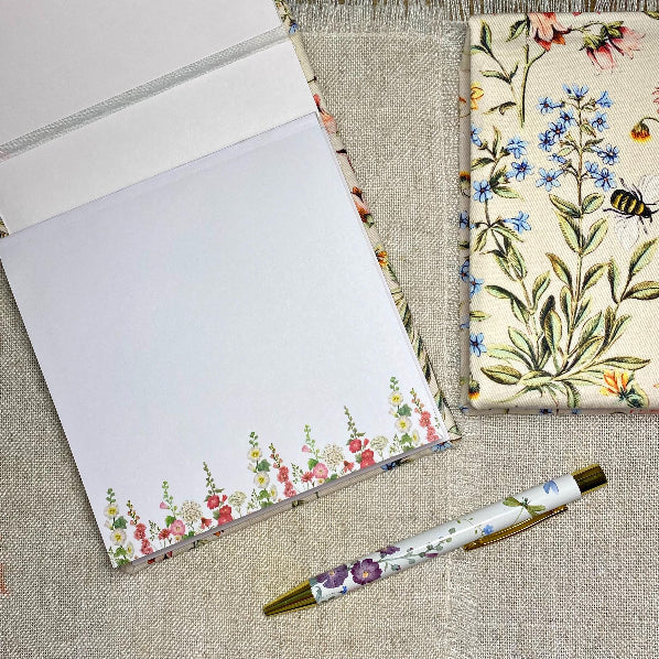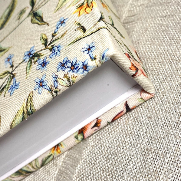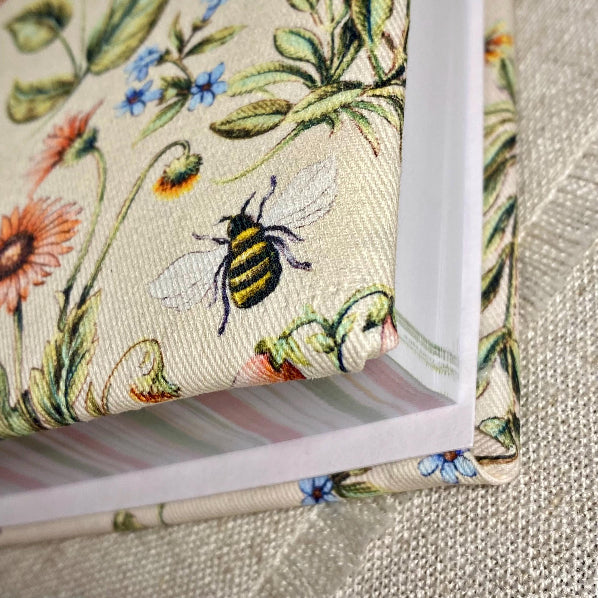 Each memo pad has a lightly padded lid and is lovingly hand covered in a vintage floral linen fabric. Professionally finished using linen tape and acid free board, these note blocks are sturdily made to last.